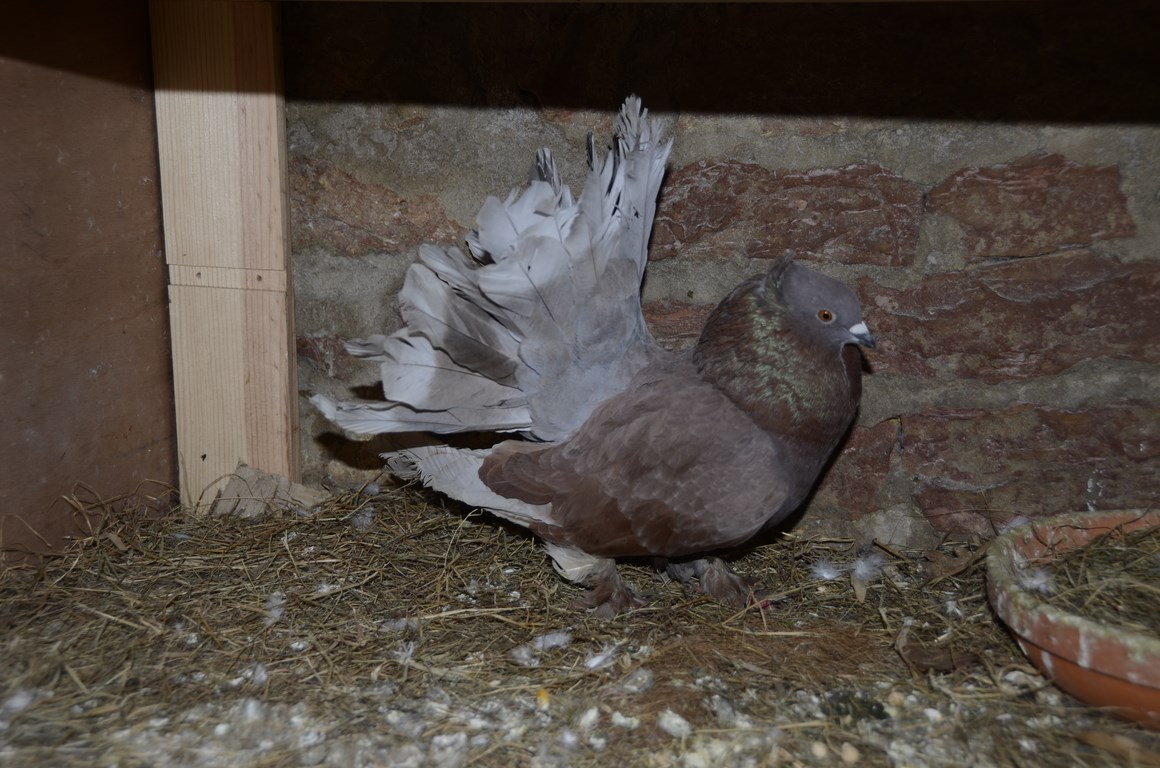 | Bonjour, On m'a confié 3 mâles QPI pour cause de surpopulation d'une petite volière. Je n'ai actuellement que des blancs à manteaux de chez le Bressan, et je voulais un avis sur ces 3 nouveaux pigeons, leur couleur, et la compatibilité avec du blanc à manteau? Mâle 1 que je trouve très joli :